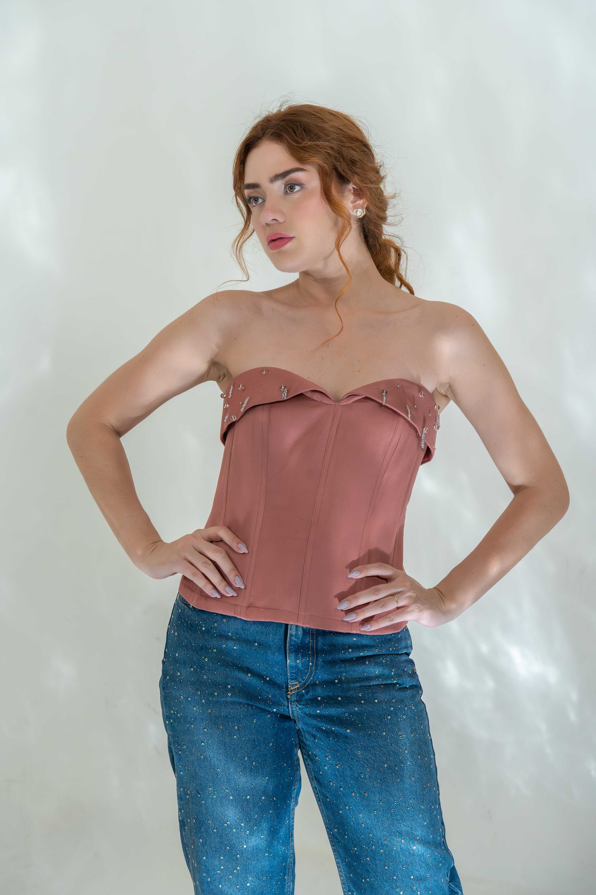 This corset is adorned with dazzling crystal embellishments that catch the light with every move. A perfect fusion of luxury, structure, and sparkle.